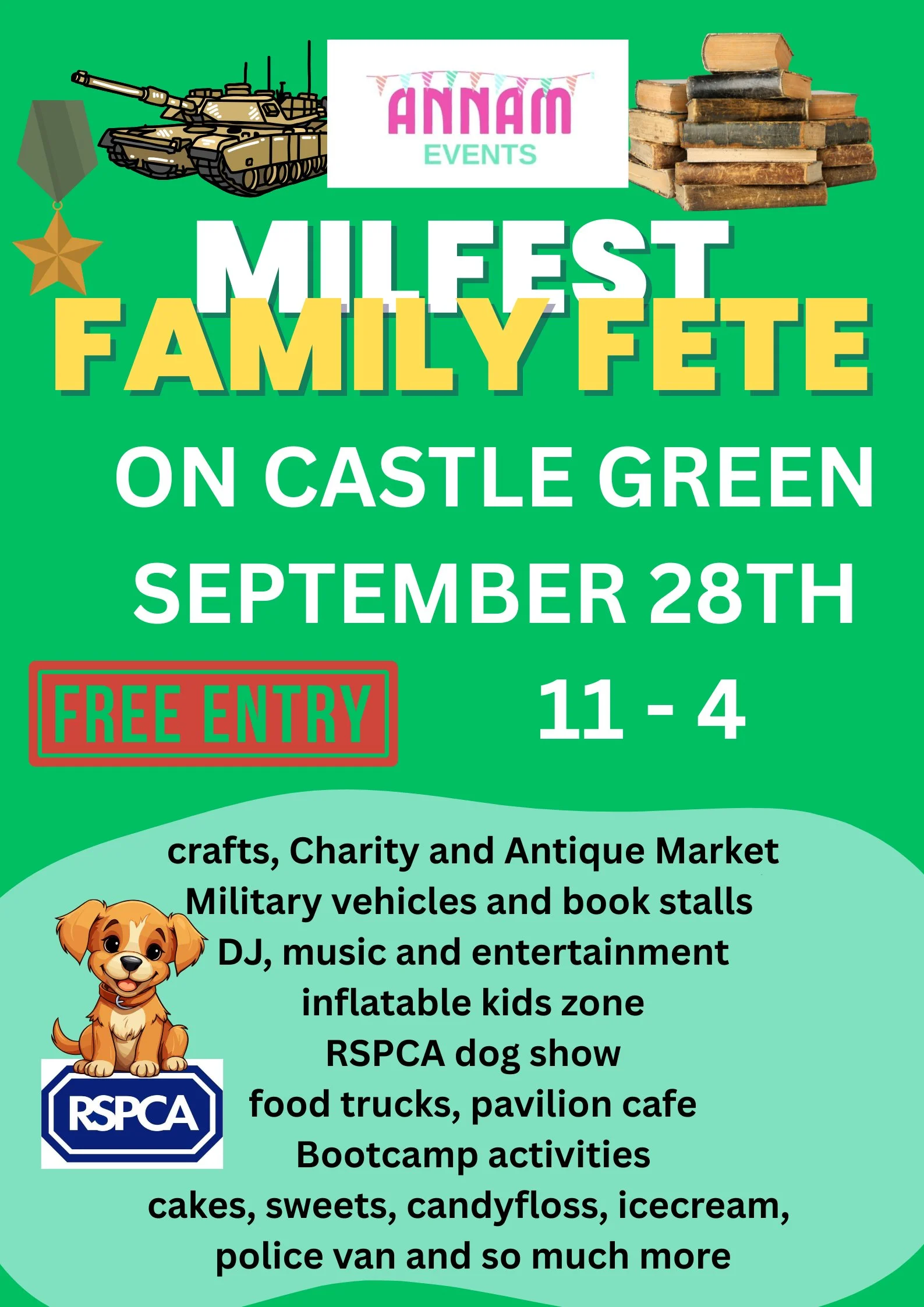 The Milfest Family Fete is a free community event delivered by Annam Events. The event specifically links with and supports the Hereford Military History Festival on Sunday 28th September, from 11am to 4pm.